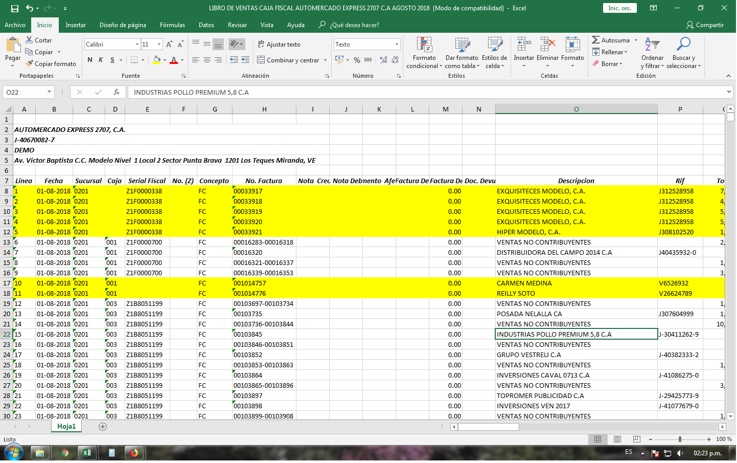 Index of /grupomodelo/DPTO CONTABILIDAD/AUTOMERCADO EXPRESS 2707, C.A/HISTORICO VENTAS Y COMPRAS/LIBRO DE VENTAS 2018